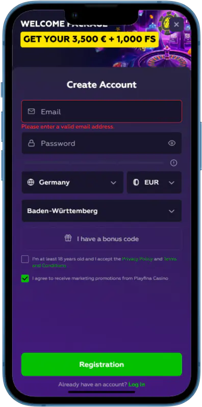 Before you can access any of this though, you first need to think about registering with PlayFina. There is no separate PlayFina casino app registration process that is different to what you’d do on the browser version of our casino website, because it is all the same. We’ve deliberately designed the site to be exactly the same across every device and operating system, so the registration and login processes are the same no matter what device you use.