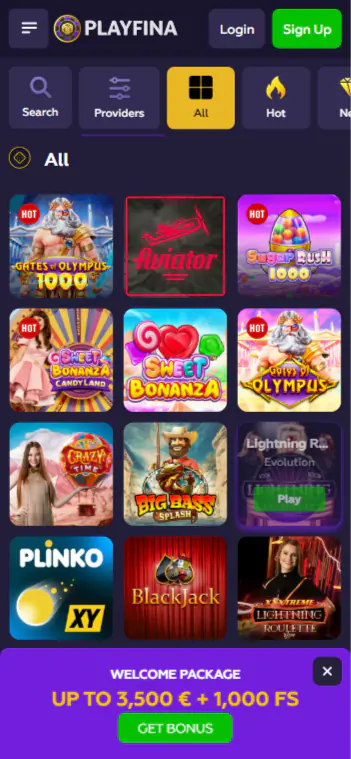 - Go to the homepage of the Playfina Casino website.