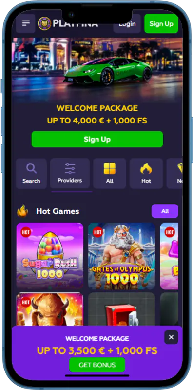 PlayFina Casino App Interface